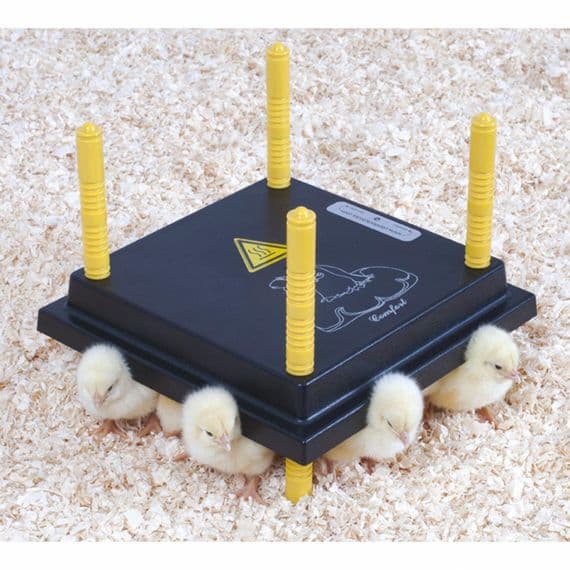 Electric hen brooders made of modern materials which are extremely economical and easy to run. Benefits include being fully compliant, complete with CE stamp on the box. The height of the unit can be adjusted by simply screwing the legs up or down allowing your brooder to grow with the birds. Multiple adjustment options also make it suitable for a variety of poultry species. Optional regulator allows for the temperature to be easily controlled. Dome cover can be bought separately.