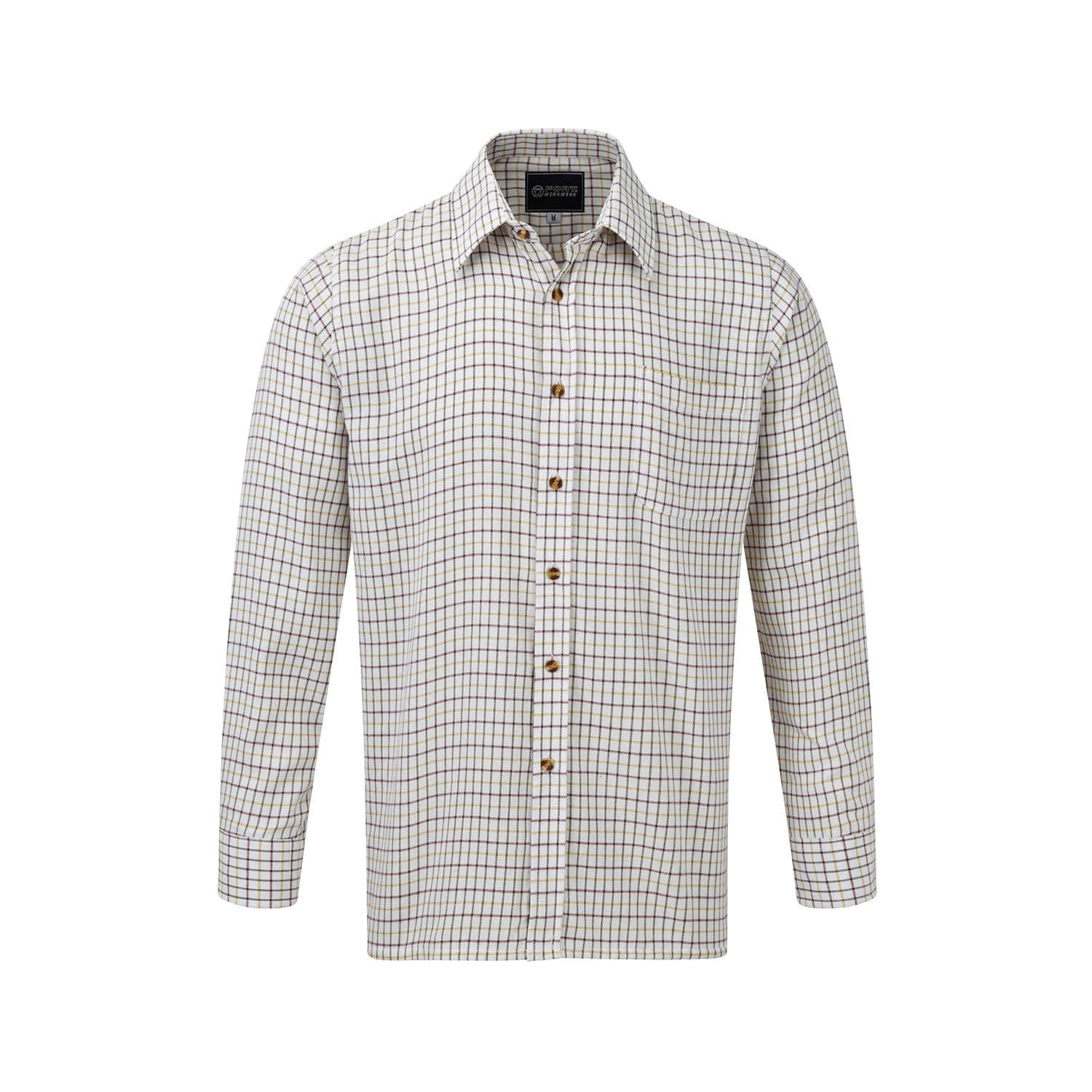 A brushed flannel shirt that feels as soft and easy as it looks. The two-tone check and patterned buttons are smart, while the cut is relaxed. Features a pleated back and twin needly stitched. Materials: Brushed flannel, 65% polyester and 35% cotton.