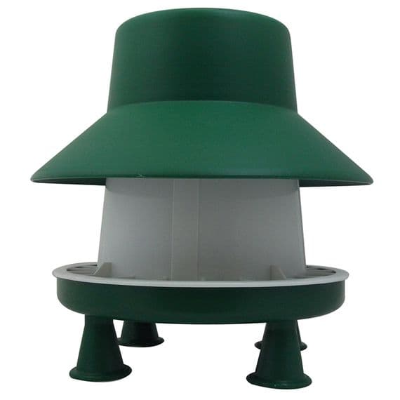 Designed with a finned base and outer ring preventing birds from flicking out feed reducing waste and mess. Ideal for the domestic and smallholder markets. Also comes with a set of four push fit legs and rain hat to prevent the feed from getting wet.