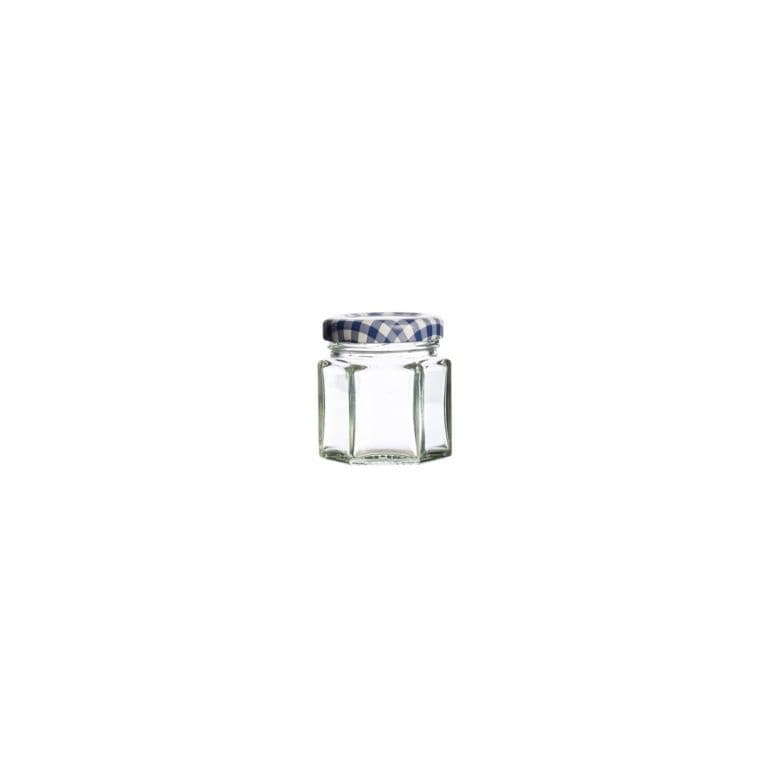 The decorative hexagonal shape of this jar makes it a popular choice for wedding favours.